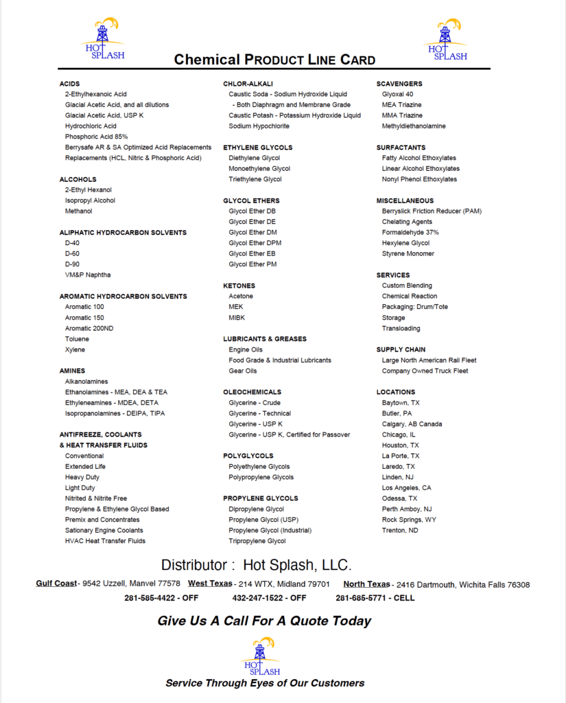 Download PDF Chemical Product Line Card